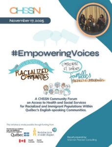 Mental Health Mental Health Regions 00-Province du Québec 01-Bas-St-Laurent 02-Saguenay-Lac-St-Jean 03-Capitale-Nationale 04-Mauricie–Centre-du-Québec 05-Estrie 06-Montréal 07-Outaouais 08-Abitibi-Témiscamingue 09-Côte-Nord 10-Baie-James 11-Gaspésie–Îles-de-la-Madeleine 12-Chaudière-Appalaches 13-Laval 14-Lanaudière 15-Laurentides 16-Montérégie Topics Caregivers Early Years and Families Information & Resources Mental Health NPI Referrals to Services Seniors Youth Categories Annual Reports Archives BDR Dashboards Briefs CHSSN Publications Community Showcase Events Frameworks and Models INSPQ & ISQ NetLink Research in Collaboration with CHSSN Socio-Demographic Profiles and Baseline Data Reports Menu Mental Health Regions 00-Province du Québec 01-Bas-St-Laurent 02-Saguenay-Lac-St-Jean 03-Capitale-Nationale 04-Mauricie–Centre-du-Québec 05-Estrie 06-Montréal 07-Outaouais 08-Abitibi-Témiscamingue 09-Côte-Nord 10-Baie-James 11-Gaspésie–Îles-de-la-Madeleine 12-Chaudière-Appalaches 13-Laval 14-Lanaudière 15-Laurentides 16-Montérégie Topics Caregivers Early Years and Families Information & Resources Mental Health NPI Referrals to Services Seniors Youth Categories Annual Reports Archives BDR Dashboards Briefs CHSSN Publications Community Showcase Events Frameworks and Models INSPQ & ISQ NetLink Research in Collaboration with CHSSN Socio-Demographic Profiles and Baseline Data Reports #EmpoweringVoices CHSSN Community Forum MENTAL HEALTH FORUM 2025 #RESILIENCE Youth Mental Health Initiative Logic Model Gaps and barriers experienced by English-speaking youth in accessing mental health services in Québec Evaluation of the CHSSN PAOSM initiative 2023-2024 Suicide Risk for Québec’s English-speaking Population Youth Mental Health Initiative final evaluation report 2021-2024 A Truly Brave Space – CHSSN’s Provincial Mental Health & Wellness Forum 2024 Report Promising Practices in Community-based Mental Health Promotion Factors affecting Mental Health and English-speakers How to Read the Promising Practices Collection A portrait of vulnerable English-speaking Youth aged 15-29 in Quebec YMHI Impact Report 2022-2023 Youth Pulse Check Infographic YMHI Evaluation Report 2021-2022 Youth Pulse Check Report Disparities in mental health and its determinants among Québec high school students by language of instruction Report on the Health and Social Services Priorities of English-speaking Communities in Quebec The Community Liaison Model: Improving Access to Health and Social Services for Quebec’s English-speaking Communities CHSSN Montreal Community Forum Mental Health and COVID-19 Quebec’s English-speaking Communities Establishing a community task force on mental health The Mental Health and COVID-19 Community Forum Adapt: Educational activities to promote youth mental health Young Adults and Mental Health COVID-19 Regions 06-Montréal 16-Montérégie 00-Province du Québec 05-Estrie 15-Laurentides 11-Gaspésie–Îles-de-la-Madeleine 07-Outaouais 04-Mauricie–Centre-du-Québec 14-Lanaudière 08-Abitibi-Témiscamingue 12-Chaudière-Appalaches 09-Côte-Nord 03-Capitale-Nationale 13-Laval 02-Saguenay-Lac-St-Jean 01-Bas-St-Laurent 10-Baie-James Topics Information & Resources Seniors Mental Health Early Years and Families Youth Referrals to Services Caregivers NPI Categories Socio-Demographic Profiles and Baseline Data Reports Archives NetLink Community Showcase CHSSN Publications BDR Dashboards Frameworks and Models Research in Collaboration with CHSSN Briefs INSPQ & ISQ Annual Reports Events