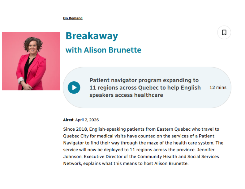 Navigating health and social services Patient Navigation Network Quebec City, April 1, 2026 — The Community Health and Social Services Network (CHSSN) is proud to announce the launch of its new Patient Navigation Network (PNN), an initiative designed to improve access to health and social services for English-speaking communities across Quebec. The project is supported by $995,000 in funding from the Secrétariat aux relations avec les Québécois d’expression anglaise (SRQEA). About the Patient Navigators While many Quebecers face both the challenges of navigating the complexities of the provincial health system and the stress of their medical situation, the PNN represents a significant step toward addressing persistent linguistic barriers faced by English-speakers when accessing care. Language plays a fundamental role across the entire continuum of healthcare, serving as the main channel for communicating symptoms, diagnosis, treatment planning, and following medical instructions. Clear communication—especially when delivered in a patient’s preferred language and in plain terms—is closely associated with greater safety, fewer medical errors, and improved health outcomes. Through this initiative, patient navigators will be deployed in 11 regions to help individuals better understand and navigate the health and social services system. “This initiative marks an important milestone in strengthening access to care for English-speaking communities,” shared Jennifer Johnson, Executive Director of CHSSN. “By building a coordinated network of patient navigators, we are reinforcing connections between communities and the health system.” Helping Patients Navigate Care Patient navigation is an evidence-based approach that supports individuals facing barriers related to language, culture, geography, or system complexity. Patient navigators provide personalized assistance to ensure patients can access and understand the care they need. Their role includes guiding patients through appointment logistics, assisting with medical forms, and ensuring that key health information is clearly communicated. Navigators also act as a bridge between patients and healthcare providers, offering accompaniment to appointments when necessary and providing emotional support to patients and their families. In addition, navigators identify and address barriers such as transportation, lodging, and language challenges. They connect individuals to community resources and, in some cases, support travel coordination for specialized care outside their region. Coordinated Support and Measurable Impact The CHSSN will lead the coordination of the network by supporting participating organizations in implementing their programs. This includes mentorship, professional development, information sharing, and the promotion of best practices. The organization will also establish a framework and statistical tools to track outcomes, manage reporting across regions, and produce annual reports evaluating the program’s impact. A Strong Community-Based Network Founded in 2000, the CHSSN has spent over two decades supporting English-speaking Quebecers in addressing health and social services disparities and promoting community vitality. Today, the network includes more than 60 member organizations and is involved in over 150 projects and partnerships spanning primary health care, community development, and population health. Through the PNN, the CHSSN will coordinate and support patient navigation services delivered by community organizations in eleven regions: Jeffery Hale Community Partners (Quebec City) Heritage Lower Saint Lawrence (Rimouski) North Shore Community Association- NSCA (Sept-Îles and Baie-Comeau) 4Korners (Laurentides) Assistance and Referral Centre- ARC (Montérégie Centre) Connexions Resource Centre (Outaouais) English Community Organization Saguenay–Lac-Saint-Jean- ECO-02 (Saguenay) English Community Organization of Lanaudière- ECOL (Lanaudière) Montérégie East Partnership for the English-Speaking Community- MEPEC (Montérégie East) Montérégie West Community Network- MWCN (Montérégie West) Townshippers’ Association (Estrie) Together, these partners will deliver services that support vulnerable English-speaking individuals in accessing both local and, when needed, inter-regional care. CHSSN NetLink Newsletter Feature Learn more about the incredible work and impact of our Patient Navigator, Steve Guimond, in Volume 40 of the CHSSN Netlink Newsletter! Read the full feature in the Spring 2024 edition pages 1-2. Patient Navigator Featured in Media CBC News CBC News – Rachel Watts · Posted: Jan 02, 2025 4:00 AM EST | ‘Steve is the guy to call’: Anglo patients in Quebec City rely on 1 man to help navigate health system CBC News has published an article featuring our very own Steve Guimond, patient navigator! CBC RADIO Quebec AM with Julia Caron – Jan. 2, 2025: Anglo patients in Quebec City rely on this man to help them navigate health system. CBC Radio segment featuring our dedicated Patient Navigator, Steve Guimond, offers a peek into his day-to-day. The Gaspé Spec The Gaspé Spec – Cynthia Dow· August 28, 2024| Volume 50 | Number 34 From the Document Center Related Resources Evaluation of the Quebec Community Health and Social Services Foundation’s (QCHF) Patient Navigator Project Patient Navigator Project- Evaluation Report